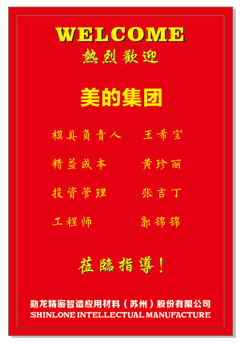 2016年10月26日,美的集团模具项目组来勋龙公司考察,在参观了厂房之后,对我们的设备以及生产能力提出了高度赞扬,也希望后期的合作能够尽快开展。也感谢了勋龙的接待团队的精心付出。勋龙一如既往的为优秀企业服务,我们也将做好产品,做好服务。
